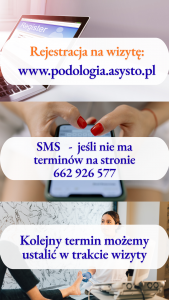 Obecnie możecie Państwo rezerwować wizytę dotyczącą wrastających paznokci lub konsultację podologiczną.