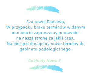 W przypadku braku terminów w danym momencie zapraszamy na stronę za jakiś czas. Kalendarz aktualizowany jest na bieżąco, gdy ktoś odwoła wizytę lub gdy pojawią się dodatkowe terminy.